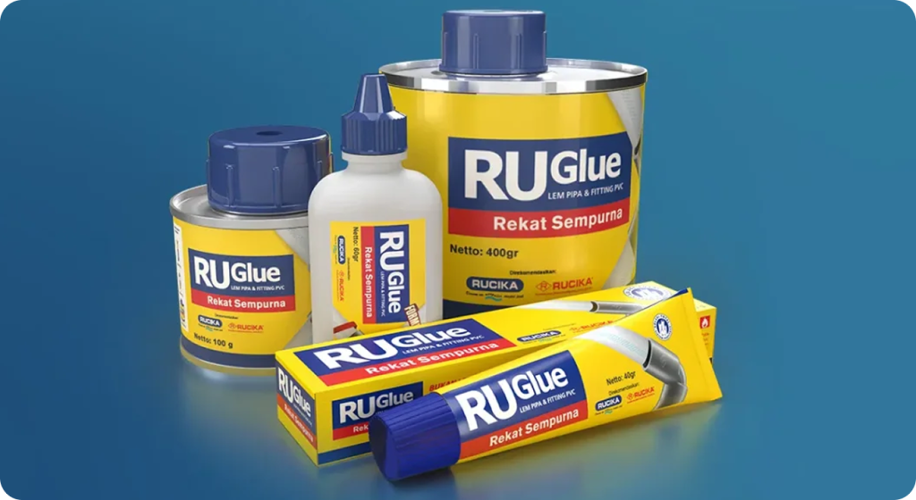 RUGlue, solusi andal dari Rucika untuk semua aplikasi penyambungan pipa PVC, dengan formula modern yang dirancang khusus bagi iklim tropis.
